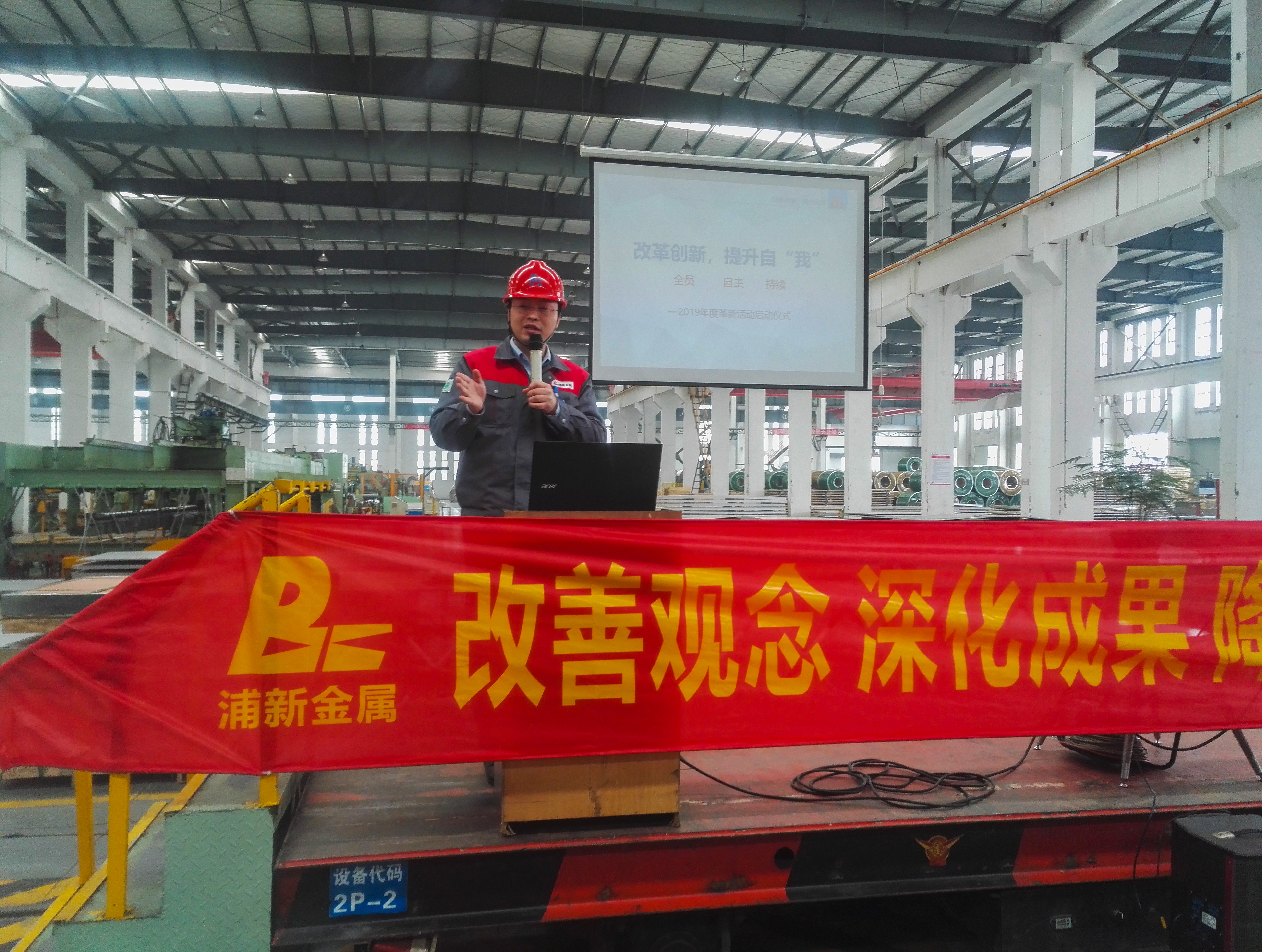 同時也發布了2019年度革新活動的持續計劃;加工中心員工代表上臺暢談了自身的革新感受。