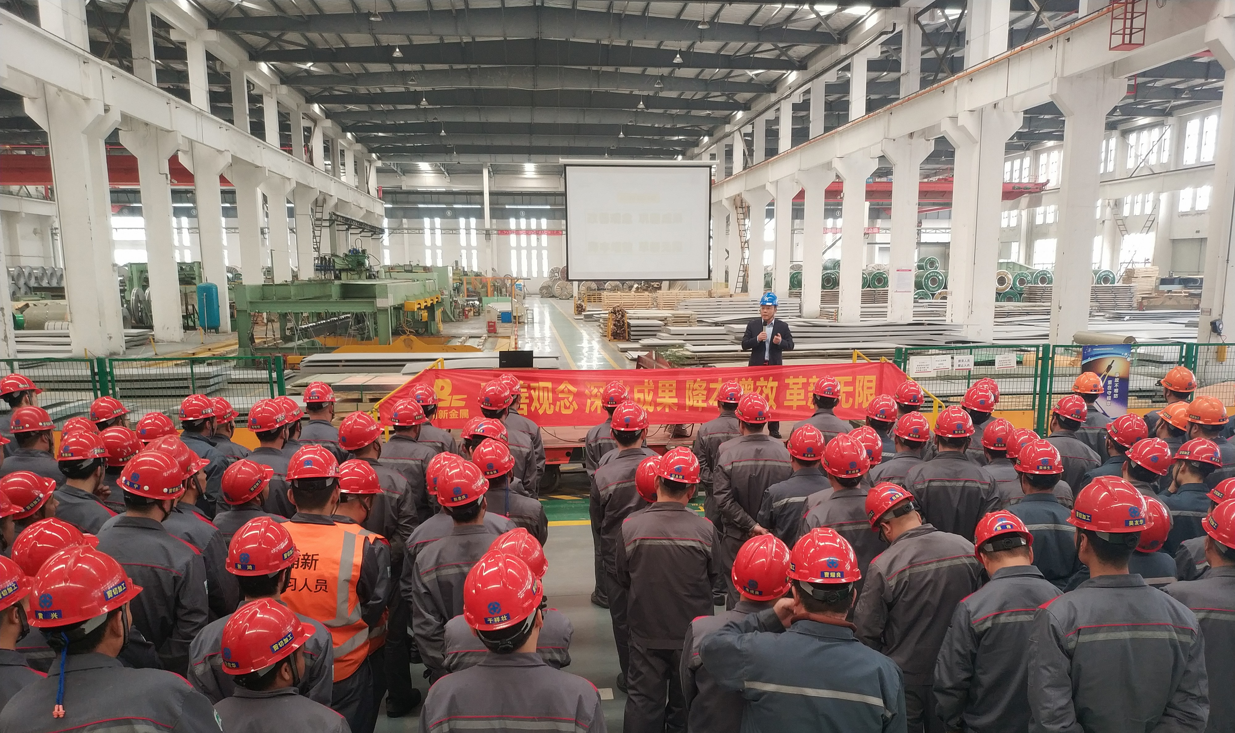 浦新金屬于3月30日召開了2019年度QSS+革新活動啟動儀式。浦新金屬沈稚輝總經理、汪敏副總經理、ZPSS革新部管國強部長、ZPSS革新部林磊Master、革新組成員以及剪切加工中心、表面加工中心、深加工中心全體員工參加了此次活動。